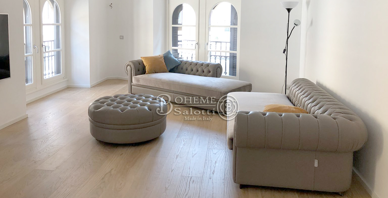 Elegantissimo pouf in pelle, velluto ecc. La lavorazione a capitonné segue fedelmente le metodologie costruttive della più raffinata tradizione classica. Disponibili anche con Swarovski.