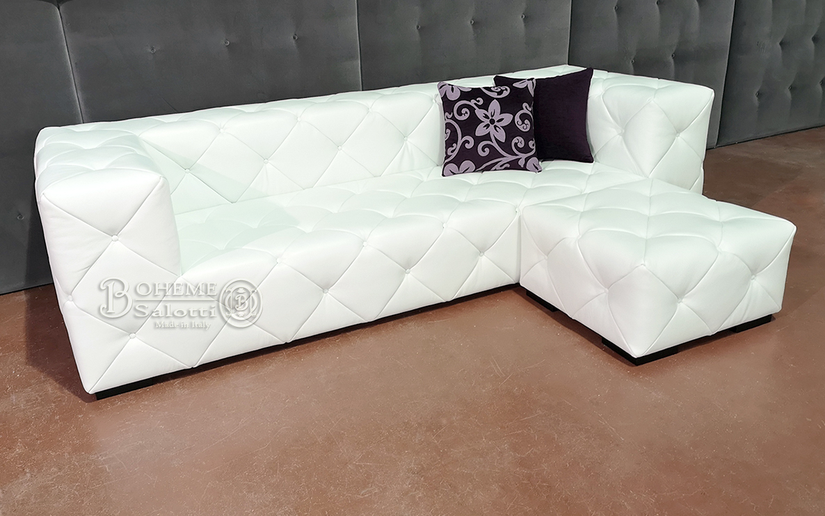 Pouf-poggiapiedi trapuntato con i bottoni. Comodo ed elegante, dallo stile contemporaneo. Disponibile rettangolare o quadrato dalle dimensioni standard o su misura. Robusta struttura in legno multistrato, imbottitura in poliuretano espanso indeformabile e ricoperta con tecnoform per darli la giusta morbidezza. Rivestimento in pelle o velluto.