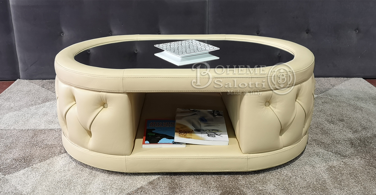 | tavolino ovale con vetro / specchio H 42,5cm L 110,5cm P 71cm |